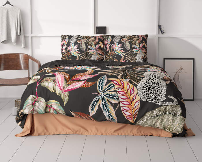 Word in stijl wakker en verfraai je slaapkamer met Welterusten, waar verfijnde esthetiek samensmelt met ongeëvenaard comfort. Deze tijdloze toevoeging aan je beddengoedcollectie biedt niet alleen een visueel feest met zijn haarscherpe digitale print, maar belooft ook een totale lengte van 220 cm, geschikt voor dekbedden van 200 en 220 cm lang.