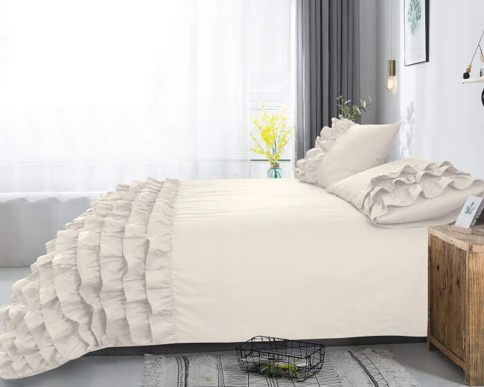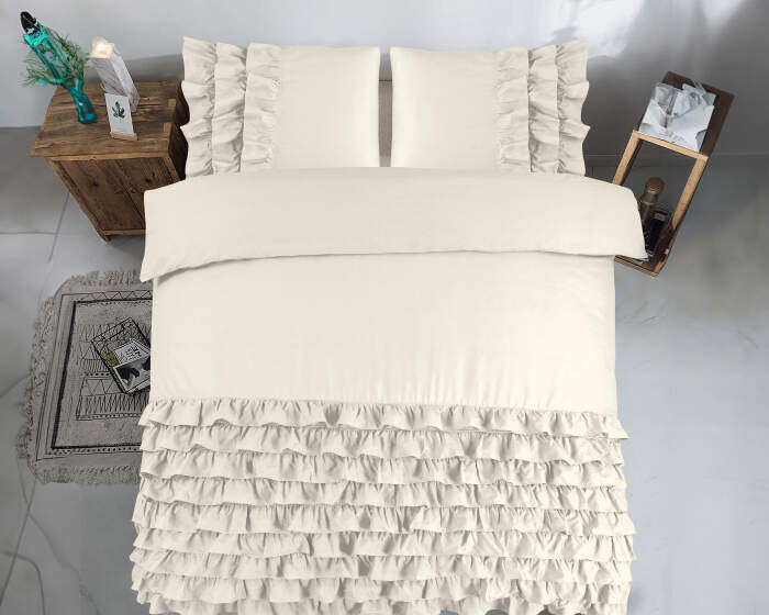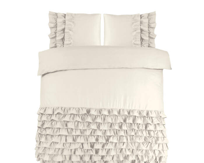 Met dit zachte Dreamhouse Classics Cyprus-dekbedovertrek met elegante uitstraling ziet je slaapkamer er heel chic uit. De elegante ruches op het overtrek ogen stijlvol en trendy. De kussenslopen hebben hetzelfde patroon, wat voor een mooi geheel zorgt. Met dit dekbedovertrek maak je van je bed het middelpunt in je slaapkamer! Dankzij de neutrale kleur is dit overtrek makkelijk te combineren met andere kleuren en slaapkameraccessoires. Dit dekbedovertrek heeft een totale lengte van 240 cm en kan afgesloten worden met de handige drukknopen.