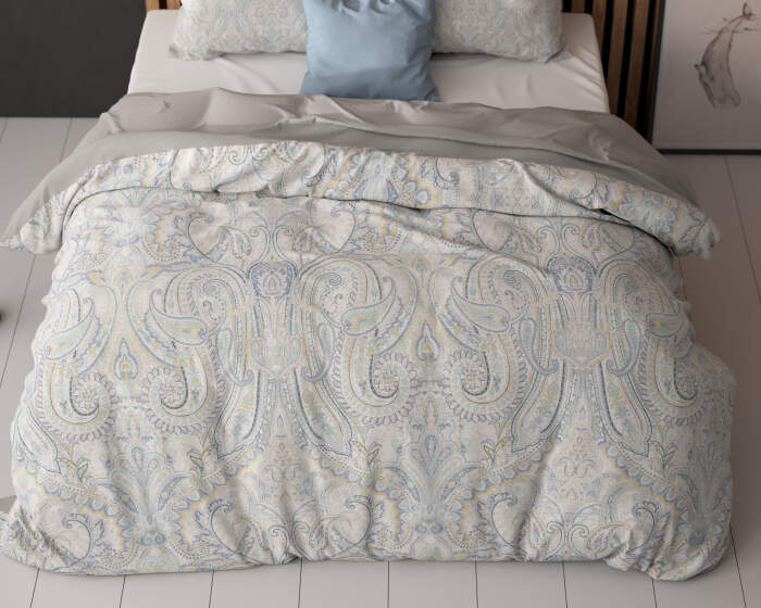 Word in stijl wakker en verfraai je slaapkamer met Welterusten, waar verfijnde esthetiek samensmelt met ongeëvenaard comfort. Deze tijdloze toevoeging aan je beddengoedcollectie biedt niet alleen een visueel feest met zijn haarscherpe digitale print, maar belooft ook een totale lengte van 220 cm, geschikt voor dekbedden van 200 en 220 cm lang.