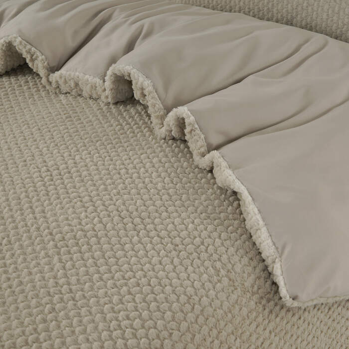 Geniet van ultiem slaapcomfort met het Sleeptime Teddy Fur dekbedovertrek. Dit dekbedovertrek biedt een heerlijke zachte teddy kwaliteit die je bed omtovert tot een knusse en warme plek. De bovenzijde is gemaakt van 100% polyester teddy stof, die niet alleen extreem zacht aanvoelt, maar ook een luxe uitstraling geeft door de mooie schelpenstructuur. De onderzijde is vervaardigd van 100% microvezel, wat zorgt voor extra comfort tijdens het slapen.