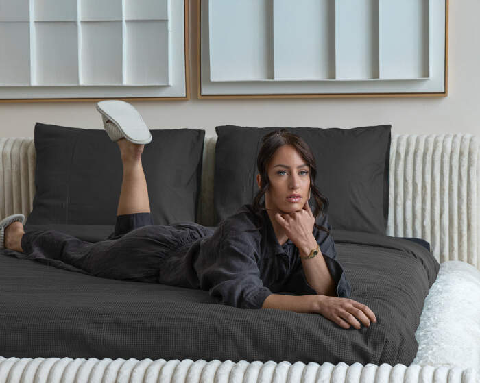 De fijne waffle textuur geeft het dekbedovertrek een stijlvolle en moderne uitstraling. Dankzij de extra lengte en de handige instopstrook met drukknopen over de volledige breedte, blijft het dekbed altijd perfect op zijn plaats. Het bijpassende kussensloop is voorzien van een hotelsluiting, wat bijdraagt aan het luxe gevoel.