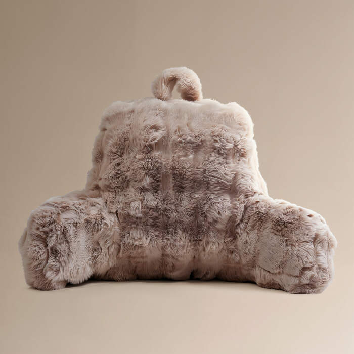 De Bedrest Pompom 34 x 50 van Primaviera Deluxe is ontworpen voor ultiem comfort en een luxe uitstraling. De bovenzijde én onderzijde zijn volledig vervaardigd uit hoogwaardige faux fur-stof met een gewicht van 500 gsm. Dit zorgt voor een bijzonder zachte en warme aanraking, ideaal om heerlijk tegenaan te leunen tijdens lezen, tv-kijken of ontspannen in bed of op de bank.
