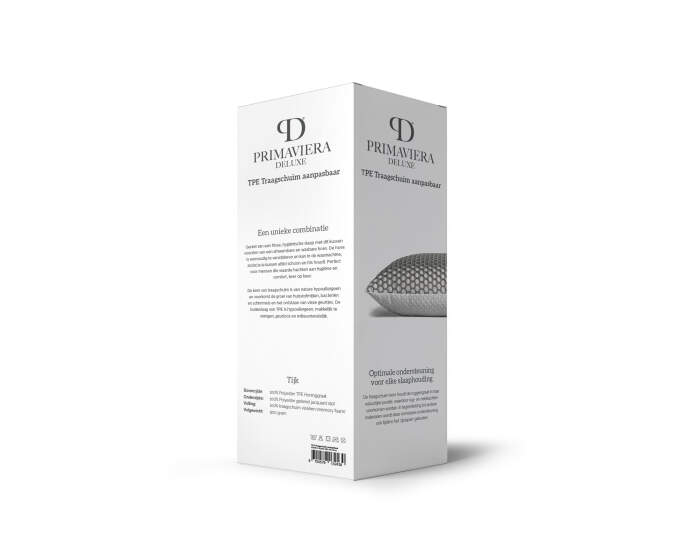 Het TPE Traagschuim Aanpasbaar Kussen wordt geleverd in een praktische doos waarin de kern en tijk zorgvuldig zijn verpakt om de kwaliteit van het materiaal te waarborgen. Na het uitpakken trek je eenvoudig de tijk over het kussen en sluit je de rits. De afneembare hoes is wasbaar op 40 graden en het TPE-materiaal is recyclebaar ? een slimme en verantwoorde keuze voor duurzaam slapen.