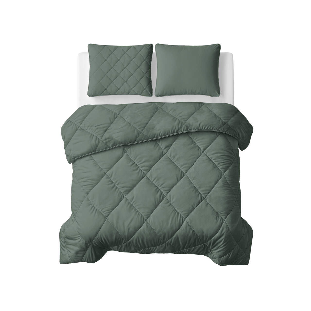 Lazy Dekbed Uni Grijs/Groen 200 x 200 Met Kussenslopen