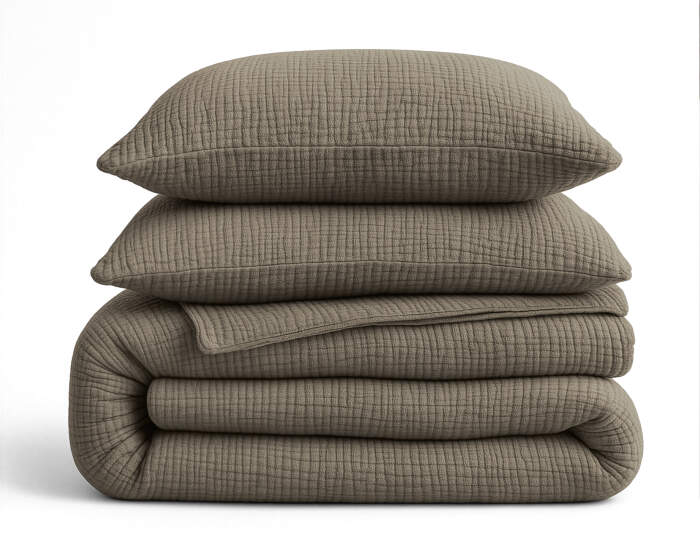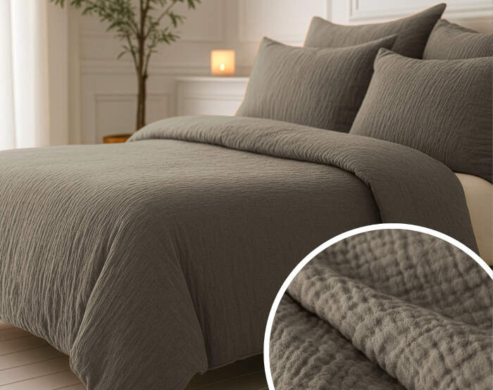 Lazy Dekbed Mousseline Taupe 200 x 200 Met Kussenslopen