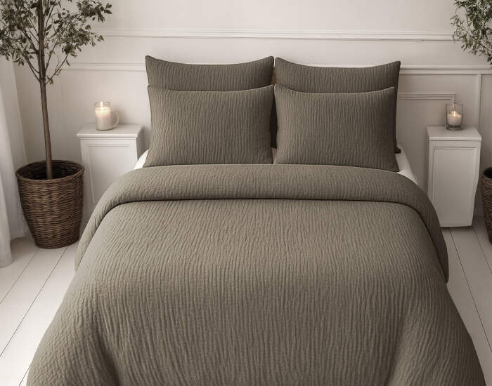 Lazy Dekbed Mousseline Taupe 240 x 200 Met Kussenslopen