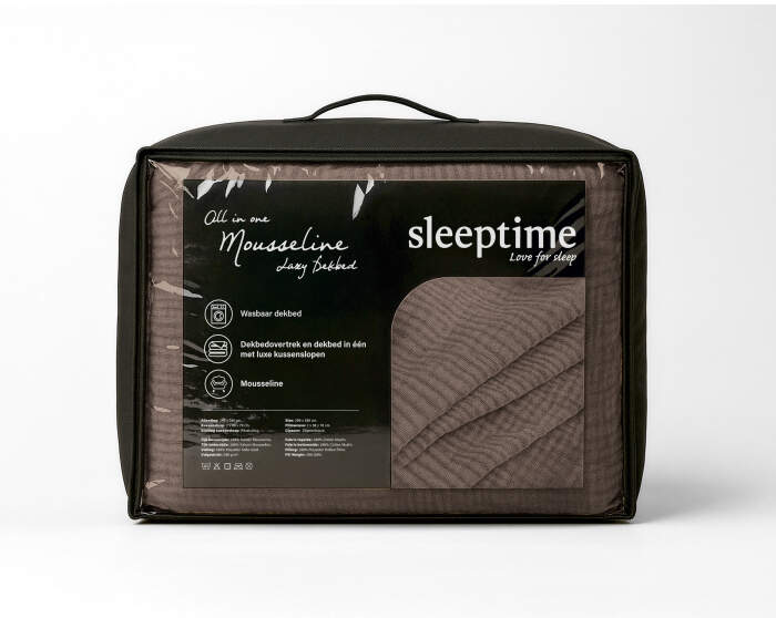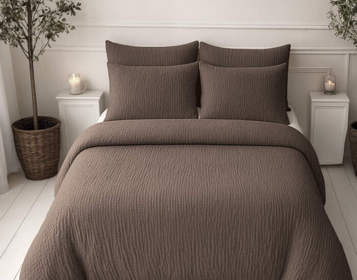 Lazy Dekbed Mousseline Donker Taupe 240 x 200 Met Kussenslopen