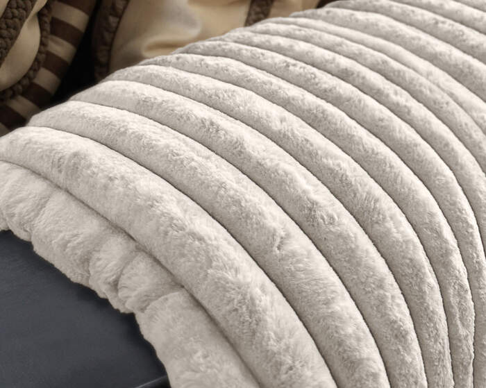 Rib Rabbit Fur Plaid Ecru 240 x 200